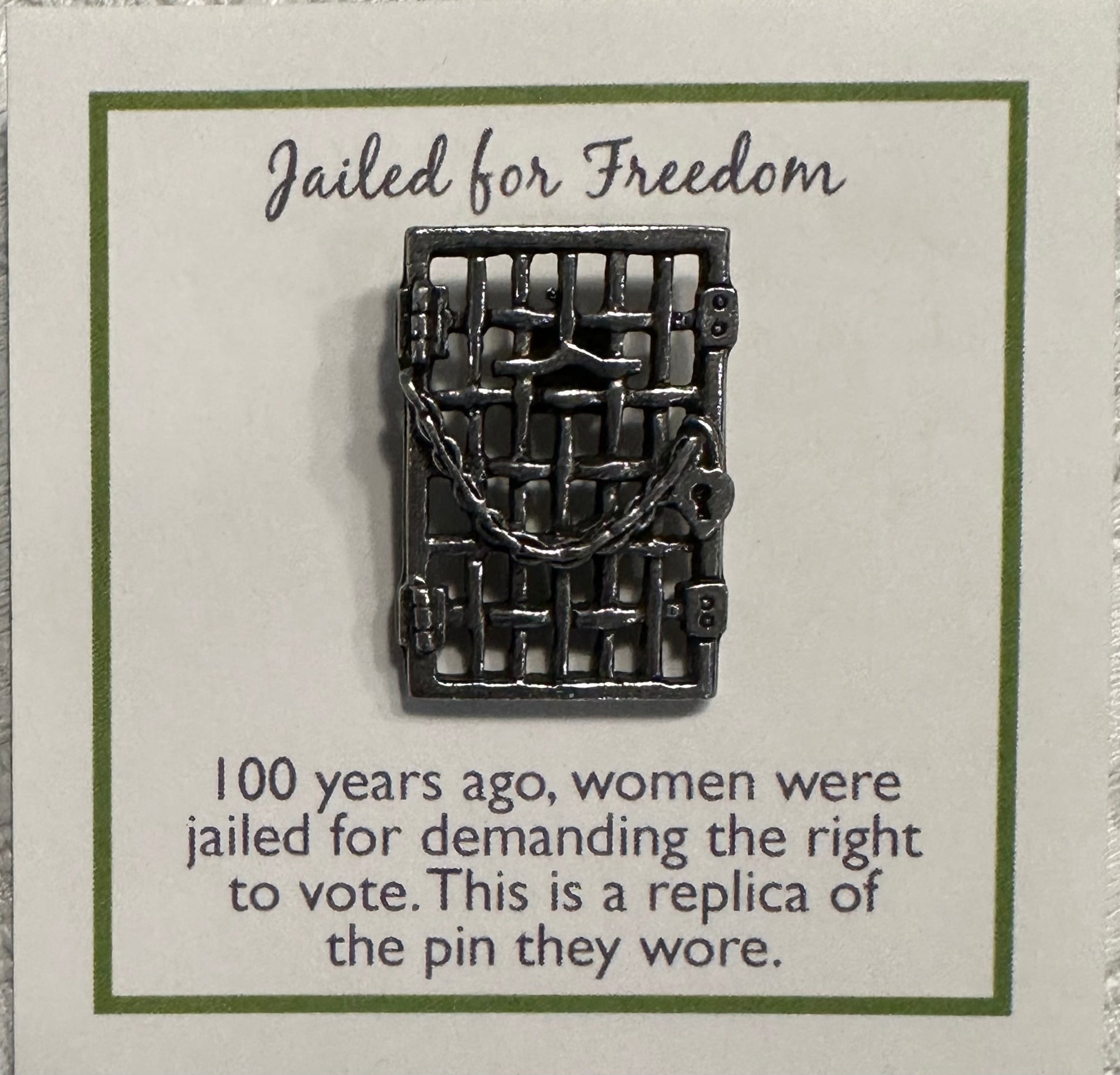 "Jailed for Freedom" pewter lapel pin.